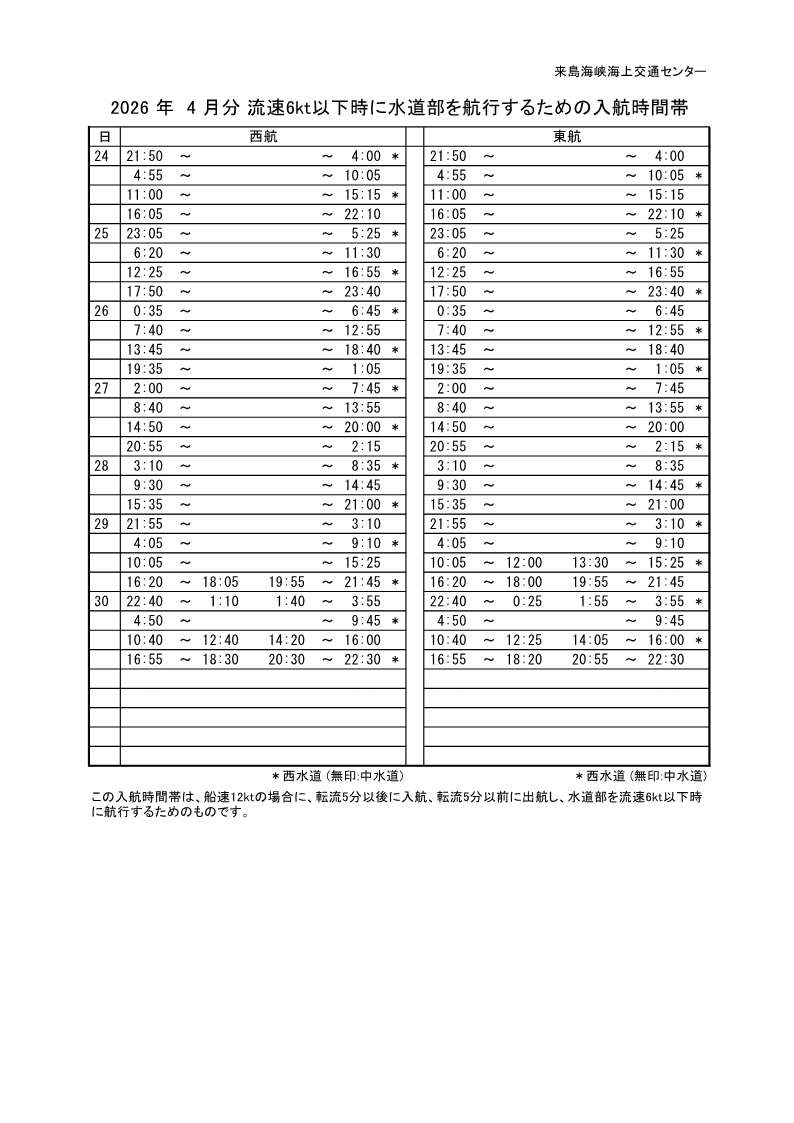 「 流速6ノット以下時に水道部を航行するための入航時間帯 」