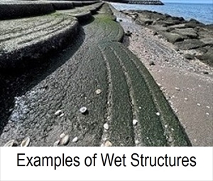 These structures become very slippery when wet, and you may fall into the sea. Do not play on them. If you fall in, climbing back onto the structure is extremely difficult.