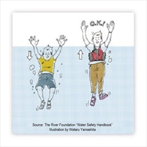 ●There is always a risk of drowning in water. In flowing water, hydraulic phenomena can push you toward the riverbed or hold you under water.Natural buoyancy alone is not enough to counter these forces. To reduce the risk as much as possible, wearing a lifejacket and having the right knowledge and skills to avoid hazards are essential.
