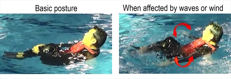 If waves or wind make it hard to maintain your posture, gently move your arms and legs to keep a stable floating position.